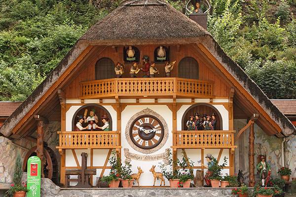 Besuchen Sie unsere Filiale in Hornberg – Niederwasser und bestaunen Sie die Hornberger Uhrenspiele, eine lebendige Kuckucksuhr mit 21 sich bewegenden Figuren.